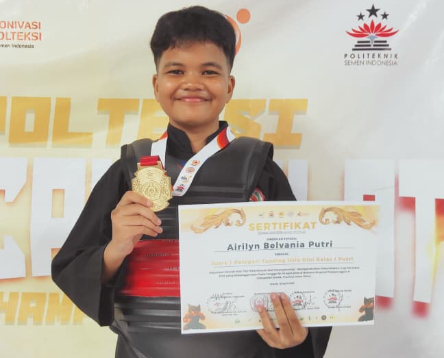 LAMONGAN//suaraglobal.co.id – Atlet pencak silat cilik asal Lamongan, Airilyn Belvania Putri atau yang akrab disapa Belva, sukses menorehkan prestasi gemilang di tingkat regional. Siswi kelas 6 SDN Sukorejo ini berhasil meraih Juara 1 Tingkat Remaja dalam kejuaraan pencak silat “POLTEKSI Pencak Silat Championship 2026” memperebutkan Piala Direktur Cup POLTEKSI.