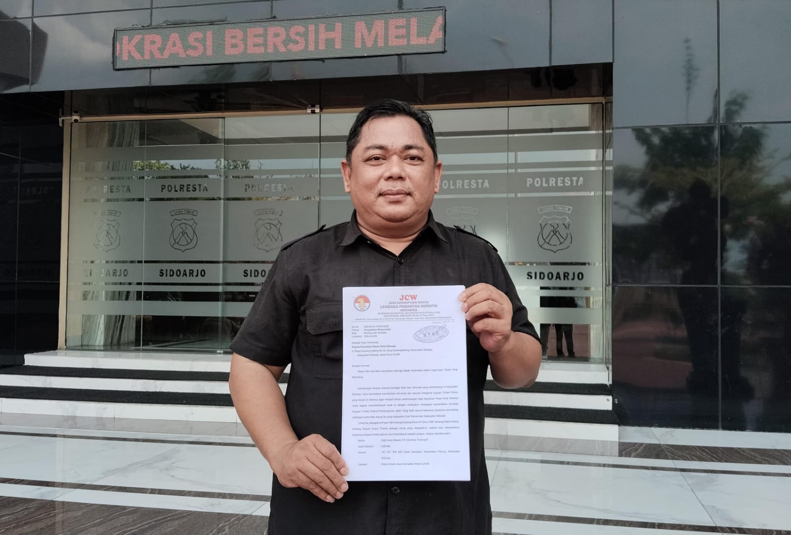 Sidoarjo//suaraglobal.co.id – Penggiat antikorupsi yang sekaligus Ketua Umum DPP Java Corruption Watch (JCW), Sigit Imam Basuki mendatangi Kantor Polresta Sidoarjo pada 28/10/2025. Kedatangan Sigit Imam Basuki kali ini untuk melaporkan dugaan adanya konspirasi tindak pidana terkait undang undang perumahan dan juga dugaan penyalahgunaan wewenang yang berpotensi menguntungkan dan memperkaya diri sendiri dan atau orang lain, korporasi sebagaimana diatur dalam pasal 3 undang undang no 31 tahun 1999 tentang pemberantasan tindak pidana korupsi.