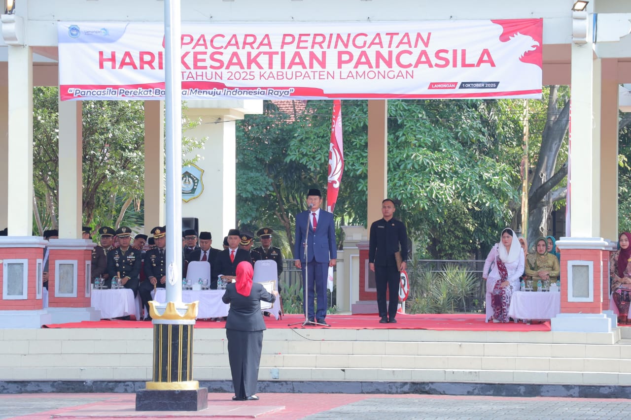 Kegiatan tersebut dipimpin langsung oleh Bupati Lamongan selaku Inspektur Upacara dan dihadiri Forkopimda Kabupaten Lamongan, pejabat TNI-Polri, ASN, serta tamu undangan lainnya.