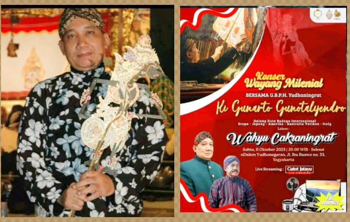 Tokoh pedalangan Indonesia, K.R.A.Ki.H.Gunarto Gunotalijendro.SH.MM, akan menggelar lakon Wahyu Cakraningrat dalam pergelaran wayang kulit, Sabtu 11/10/2025, pukul 20.00 ~ selesai, di nDalem Yudhonegaran, Yogyakarta.